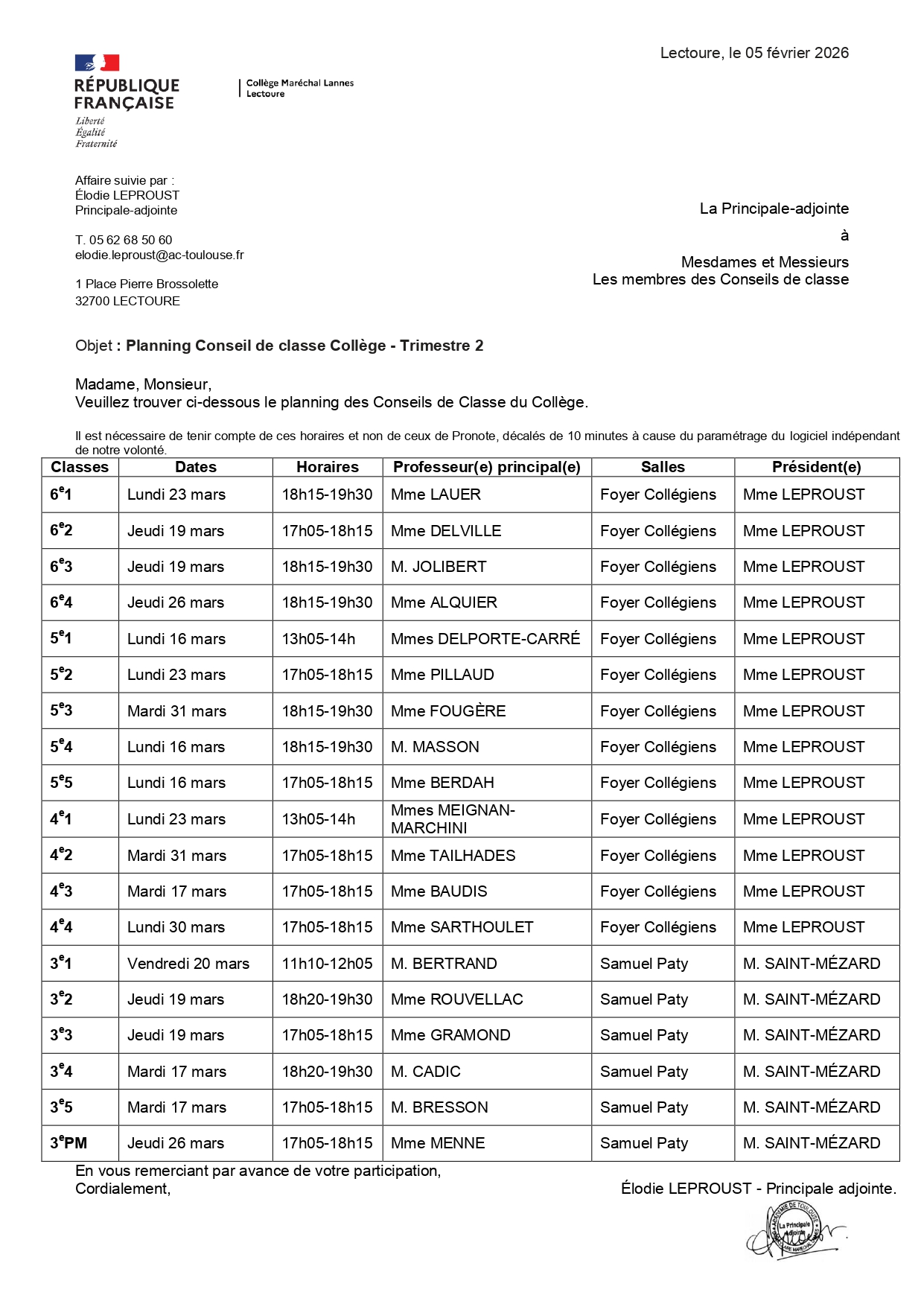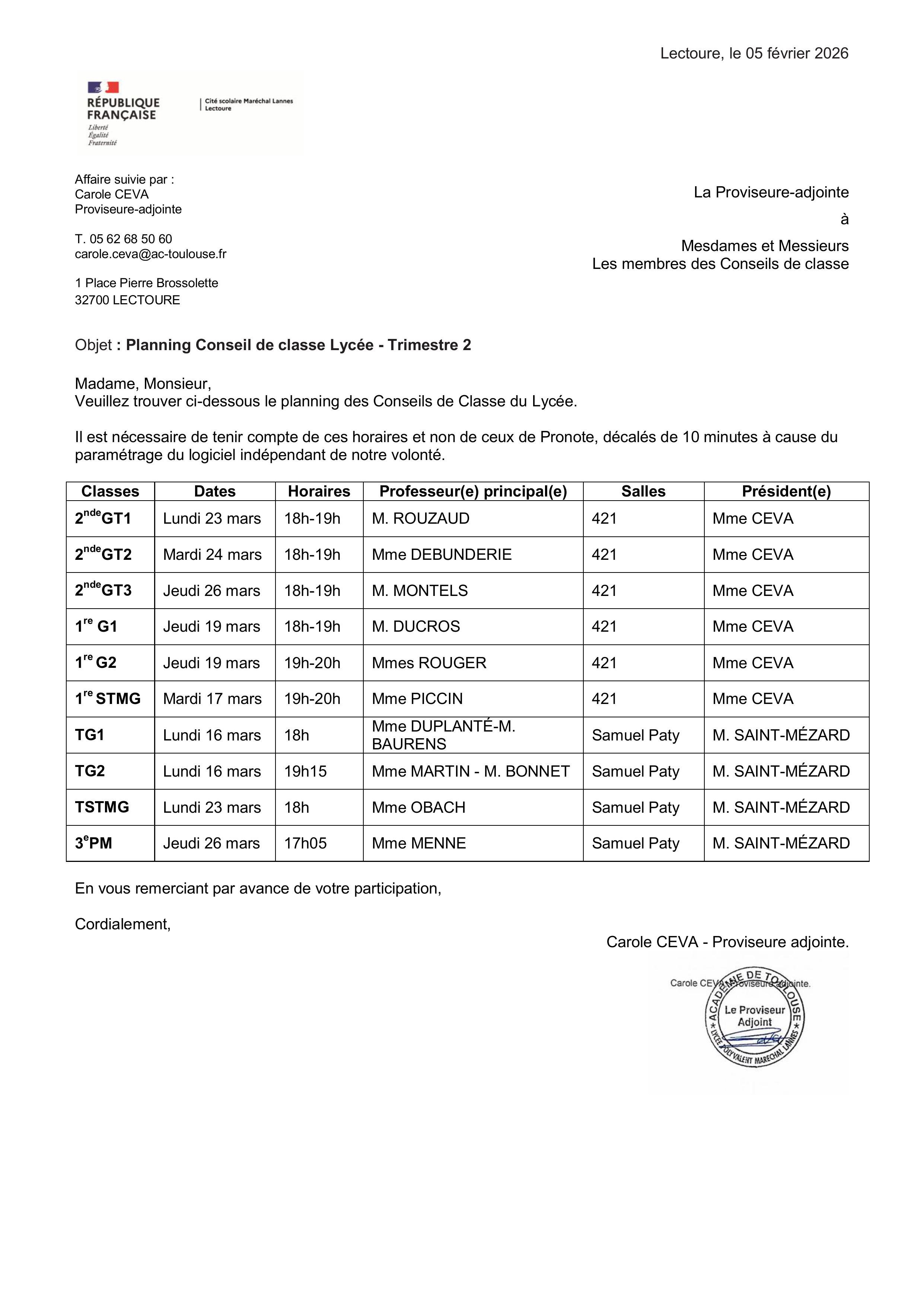 MODIFICATION : Conseils des 4e2 et des 5e3 --> Jeudi 2 avril
