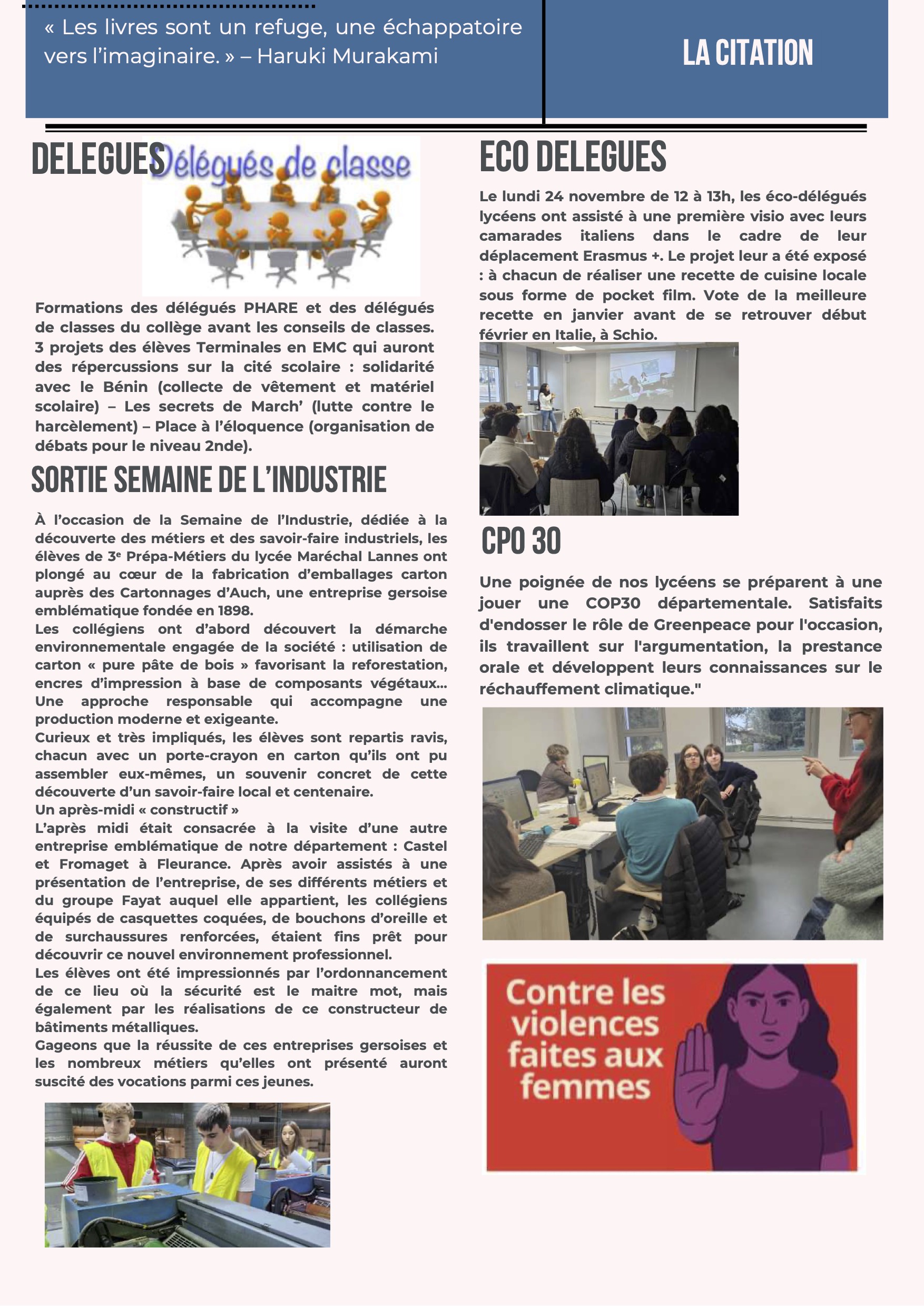 Des informations sur la vie de la Cité scolaire Maréchal, chaque semaine !
